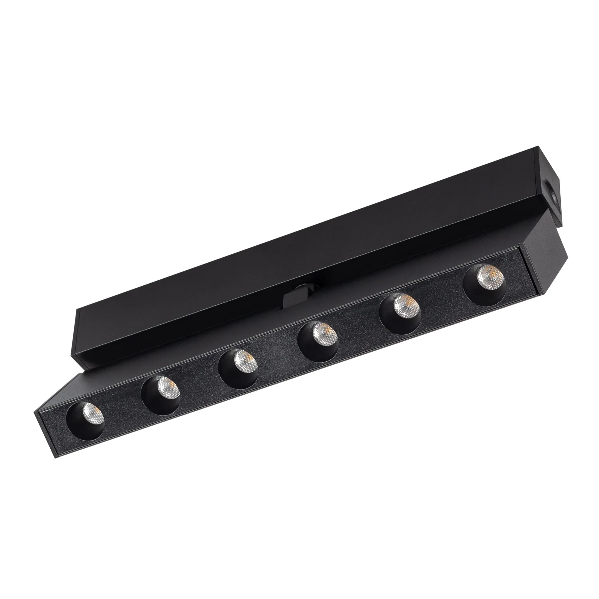 Светильник поворотный для магнитных треков шириной 25мм, 6Вт. Цвет свечения ДНЕВНОЙ 4000K, световой поток 400 лм, угол 30°, CRI>90. Корпус прямоугольный, металл, цвет черный, IP20. Размеры LxWxH 204x20x46мм. Входное напряжение DC24V, мощность 6Вт. Драйвер DС24V/AC230V поставляется отдельно. Диммируется только с 026407, 027633.