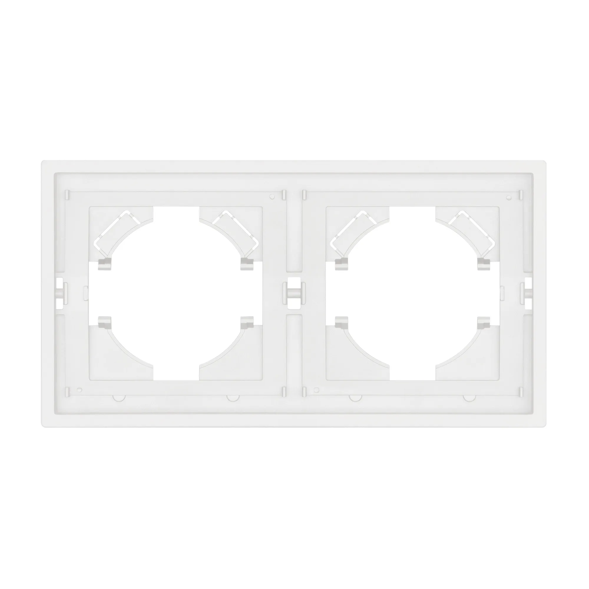 Рамка пластиковая на 2 поста, под встраиваемый механизм. Цвет - матовый белый, с Soft-Touch покрытием. Уровень герметичности IP20. Ориентация монтажа горизонтальная.
